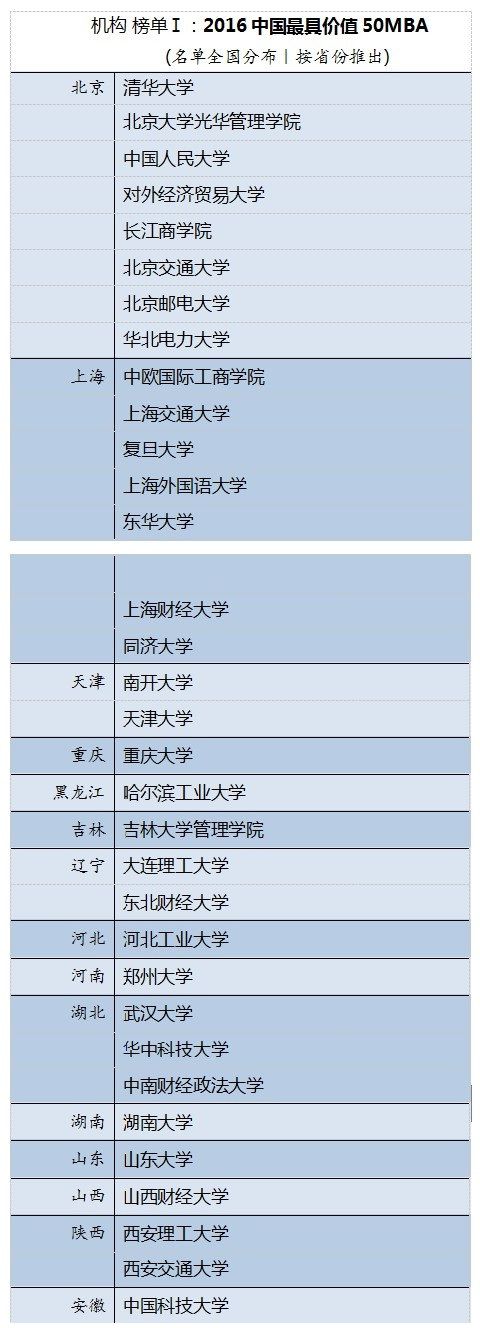 《中国最具价值50MBA》脱胎于《MBA成就奖》评选,后者曾在2004年-2013年在中国大陆连续十年举办。《中国最具价值50MBA》CHINA MBA TOP50是针对中国大陆MBA学位教育机构的评选活动,涉国内商学院、中外合作MBA项目,独立商学院三类机构。《中国最具价值50MBA》CHINA MBA TOP50发布中国大陆市场排名靠前的50家MBA教育机构名单,同时发布机构单项奖及针对MBA中心主任、MBA教授、MBA毕业生的三类个人奖项。《中国最具价值50MBA》(CHINA MBA TOP50)由商学院传播联盟、InMBA、品牌时代国际传媒联合部分主流财经、教育媒体共同推出,从2015年起,每年发布一次。