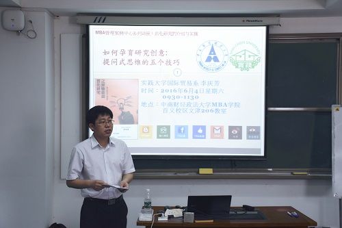 6月4日上午,受MBA学院管理案例研究中心邀请,台湾实践大学李庆芳教授在文津楼206作了“如何孕育研究创意:提问式思维的五个技巧”专题讲座,吸引了大批MBA学员、专业教师、研究生前来学习和交流,教室座无虚席。这次讲座由8797威尼斯老品牌MBA学院副院长文豪主持。