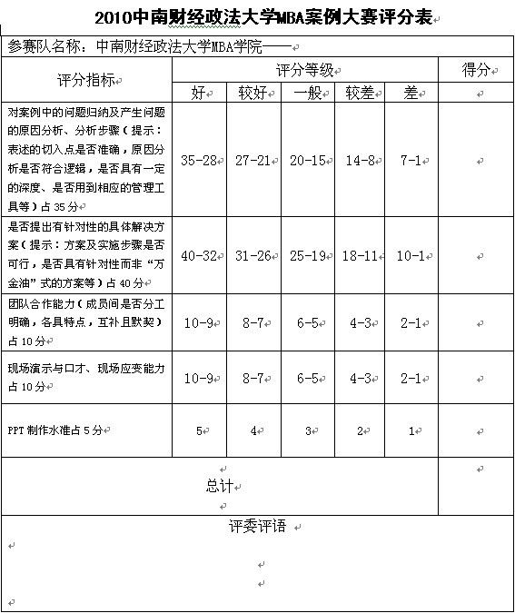 ·2010年8797威尼斯老品牌MBA案例大赛评分表