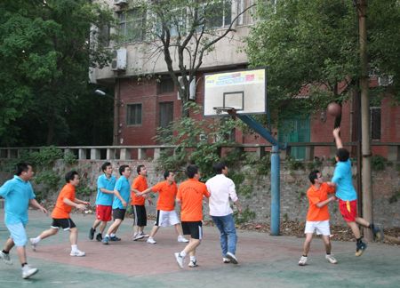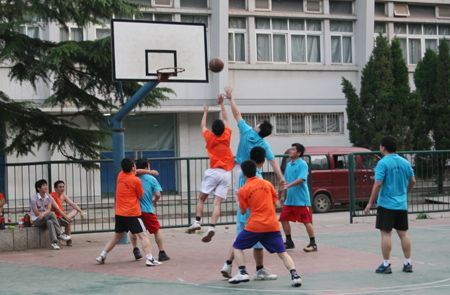 整个比赛过程中,蓝色军团稳住节奏,通过防守断球、逐个盯防、抢篮板、把握投篮机会等策略,在第一、二节时,很好地发挥优势。在第三、四节,橙色战车体力优势得到很好发挥,并且也慢慢打出节奏,紧咬MBA集中班队,比赛进入白热化状态。场外,啦啦队的竞争也异常激烈,二队的欢呼声、加油声、掌声,你方唱罢我又登场,将比赛气氛推向一个又一个的高潮。