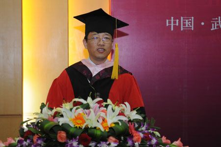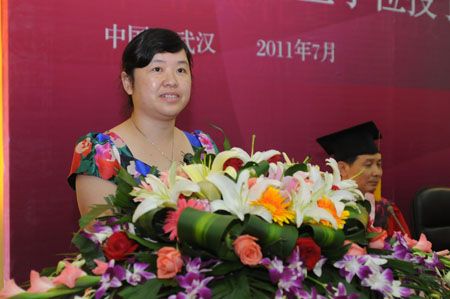 毕业生代表,文化部艺术人才中心处长范秀东同学代表全体毕业学员倾诉了对母校的感激与不舍:“今天对于我们在座的来说,是个不同寻常的意义。我相信,我们2011届EMBA学员,不会辜负母校对我们的厚望,不会辜负我们的学位给我们的社会责任。我们将从今天开始,百尺竿头,更进一步,向着更辉煌的业绩,向着更美好的明天,我们共同迈进。"