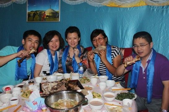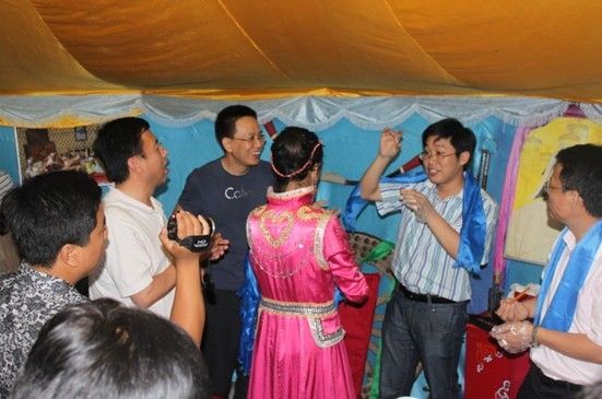 到了草原,已经是夕阳西下,但湛蓝蓝的天空白云,还有那白色的蒙古包依然让大家欢呼雀跃。蒙古包的欢迎仪式是在马头琴和歌声中开始的,一杯奶酒,一条哈达,会让你感受草原人的热情和胸怀。