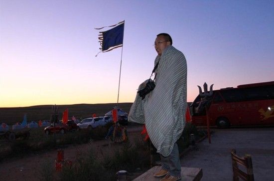 清晨了,温度还是那么低,但空气真好啊,把被子当披风的老总大家见过吗?呵呵,下面就有一位正惬意的享受着草原的清晨!