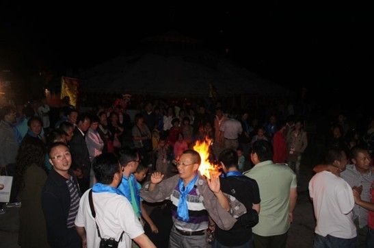 夜晚的草原尤其冷,白天都还是二十几度,晚上就变成冷风飕飕,来一场篝火狂欢也是必要的。围起来的篝火照亮了夜空,来自各地的人们聚集在一起,载歌载舞。