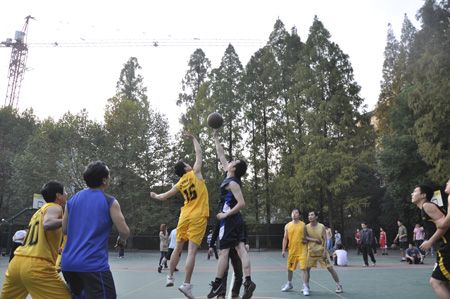 赛中,队员们个个雄姿英发,在场上你争我夺,一轮轮地抢球,投球动作潇洒,每个动作争锋相对,帅气利索,双方争夺异常激烈。比赛进行地如火如荼,双方队员都情绪高涨,观众亦激情四射,啦啦队也喊得气势磅礴,在场边拉起了加油横幅,敲打着手中“加油拍”为场上的队员呐喊助威,现场的气氛十分活跃。