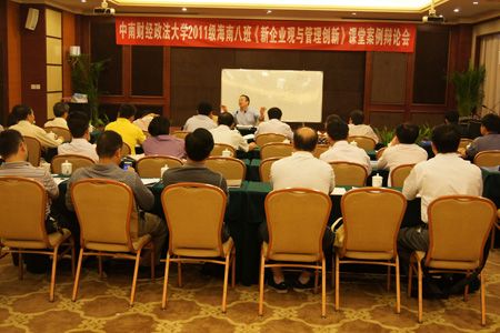 在主持人阮联森和傅海宝的开场白后,只见一组组长王昌龙第一个上台阐述案例,他的主题是运用“众包理论”设计海南农垦热带农业发展新思路。10分钟时间,他把海南农垦热带农业问题的提出、众包理论的概念、解决问题的思路,一一作了深刻的阐述,喊出的小组口号是“跳出农业做农业,打通打通再打通!”同组的陈秋明作了5分钟的补充,这时二组的“盟军”李奇胜给予充分肯定,支持第一组论题。接着三组的“先破后立”角色上台了,他连续提出三个问题否定一组的方案,真是针锋相对,毫不留情。之后,四组的上,来了个“标新立异”,标的够胆够新。这样一个小组下来,38分钟。台上辩论激烈,台下掌声不断,课堂气氛活跃。大家在开心轻松的环境中取长补短,相互学习。