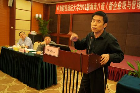 来自海南光大银行的席云婷是刚转到这个班里来的一位女同学,她积极参与这次辩论会,作为第一组标新立异角色,她运用产业无边界理论建议与银行合作,销售房产,给第二组“海南农垦房地产销售模式”的课题提出了许多好的建议。还有来自海南联合资产管理公司的常委书记李胜平、海南橡胶金江分公司的高峰、海南农垦保国农场场长彭华达,都表现得十分出色。整个辩论会,有特点、有亮点、个性突出,龙争虎斗,互不相让。